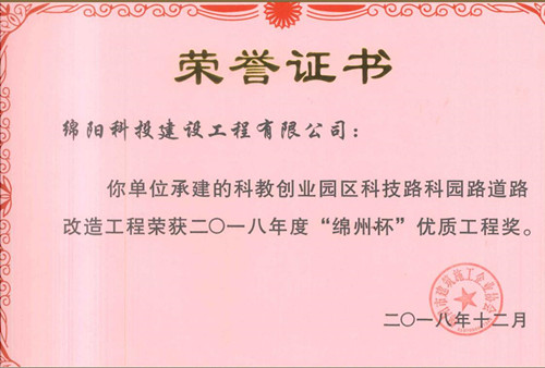 2018年度綿州杯優(yōu)質(zhì)工程獎